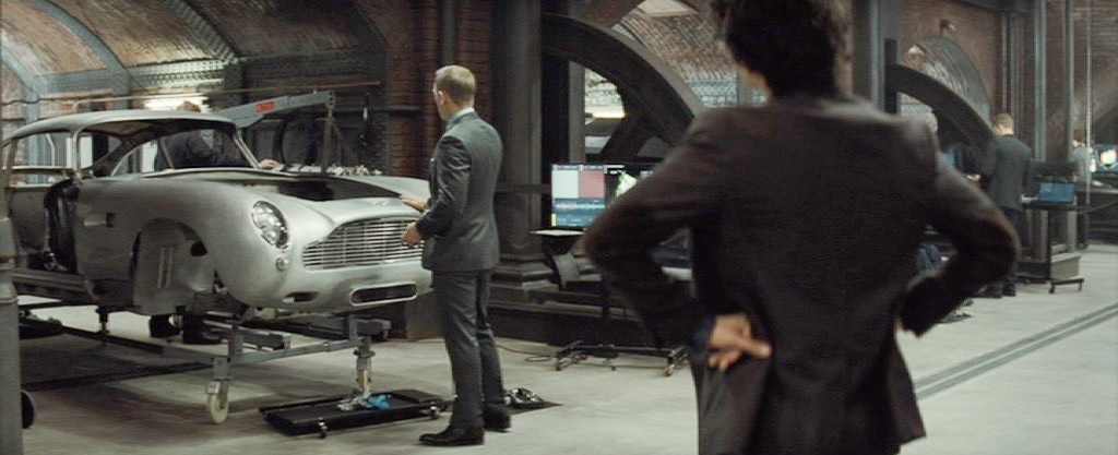 Here the DB5 returned in the pre-title sequence, where we saw the bullet-proof steel plate shield for the rear window and the two water cannons spray water. I guess only a few noticed the fact that the luggage space of this mighty sport hatchback was big enough to hide the huge jetpack set. Amazing.